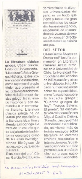Autores chilenos - García Alvarez, César - Literatura clásica griega, historia, textos, comentarios