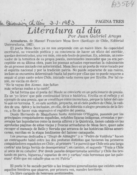 "Armaduras": historia y poesía [artículo] Andrés Sabella.