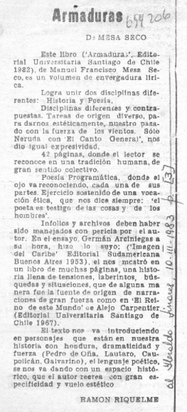 Armaduras" de Manuel Francisco Mesa Seco [artículo] Jaime González Colville.