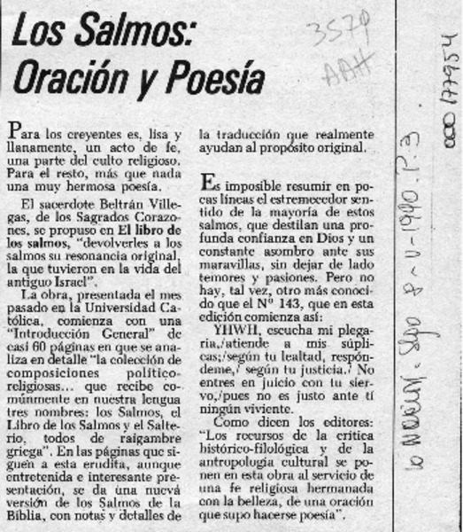 Presentación libro "El libro de los Salmos" [artículo] Beltrán Villegas M.