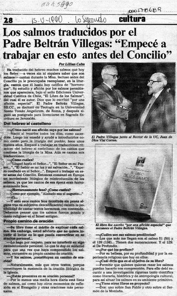 Los salmos traducidos por el Padre Beltrán Villegas, "Empecé a trabajar en esto antes del Concilio" [artículo] Lillian Calm.