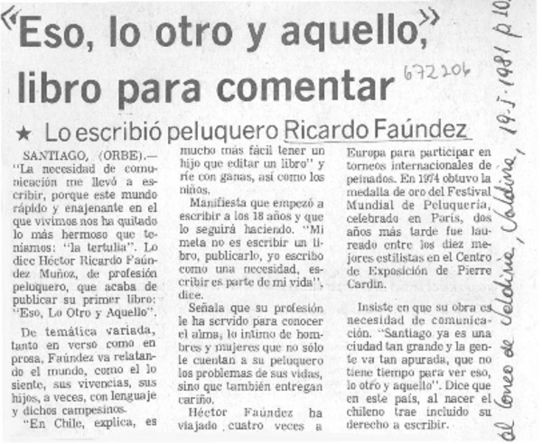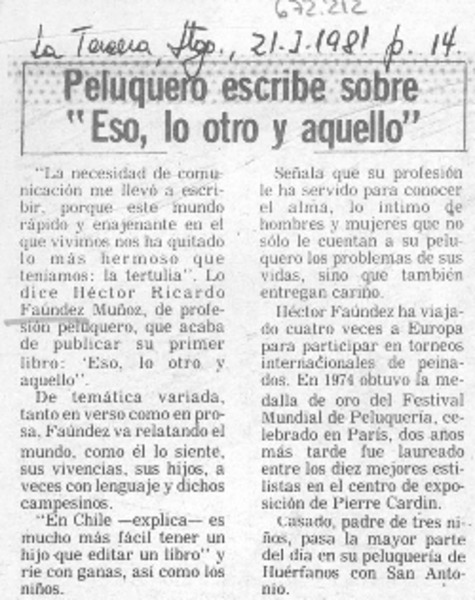 Peluquero escribe sobre "Eso, lo otro y aquello". [artículo]