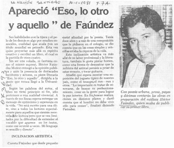 Apareció "eso, lo otro y aquello" de Faúndez. [artículo]