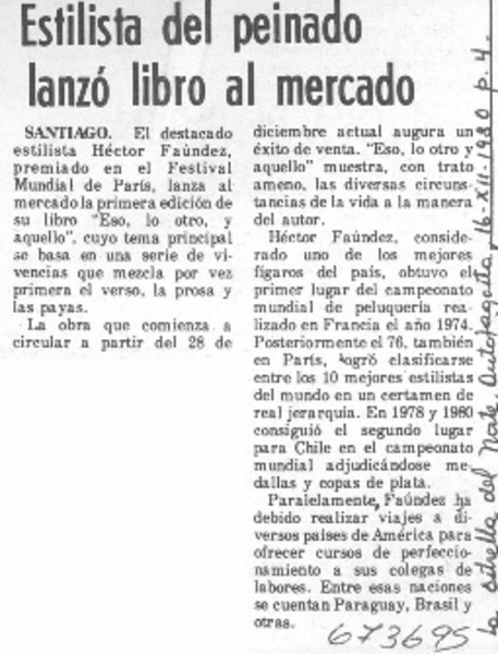 Estilista del peinado lanzó libro al mercado. [artículo]