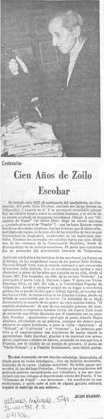 Cien años de Zoilo Escobar [artículo] Juan Florit.