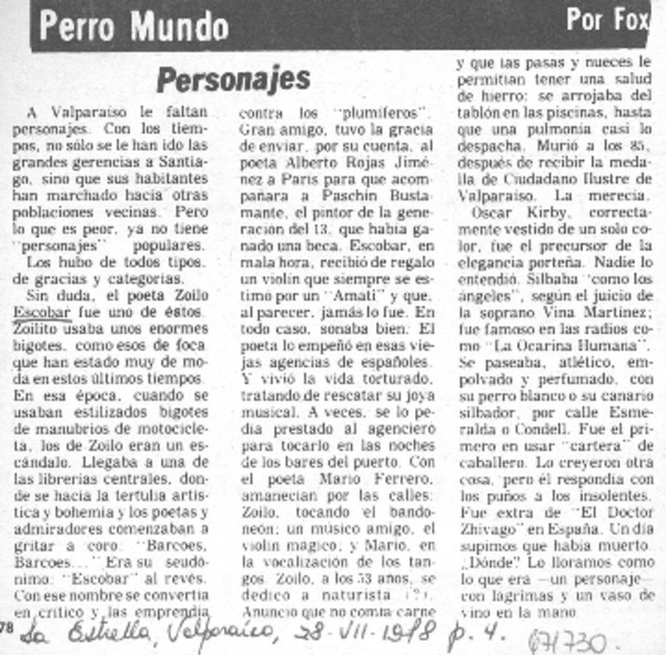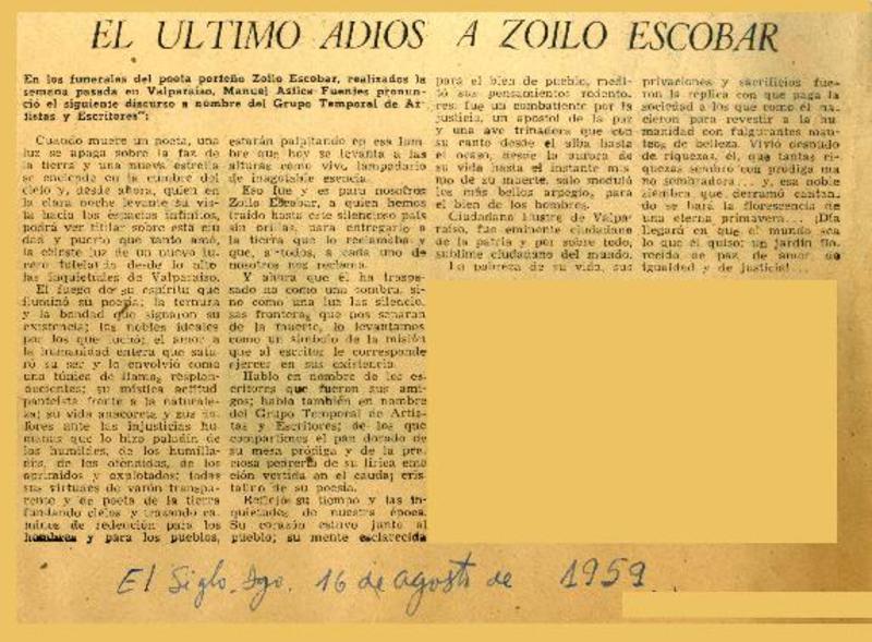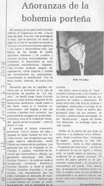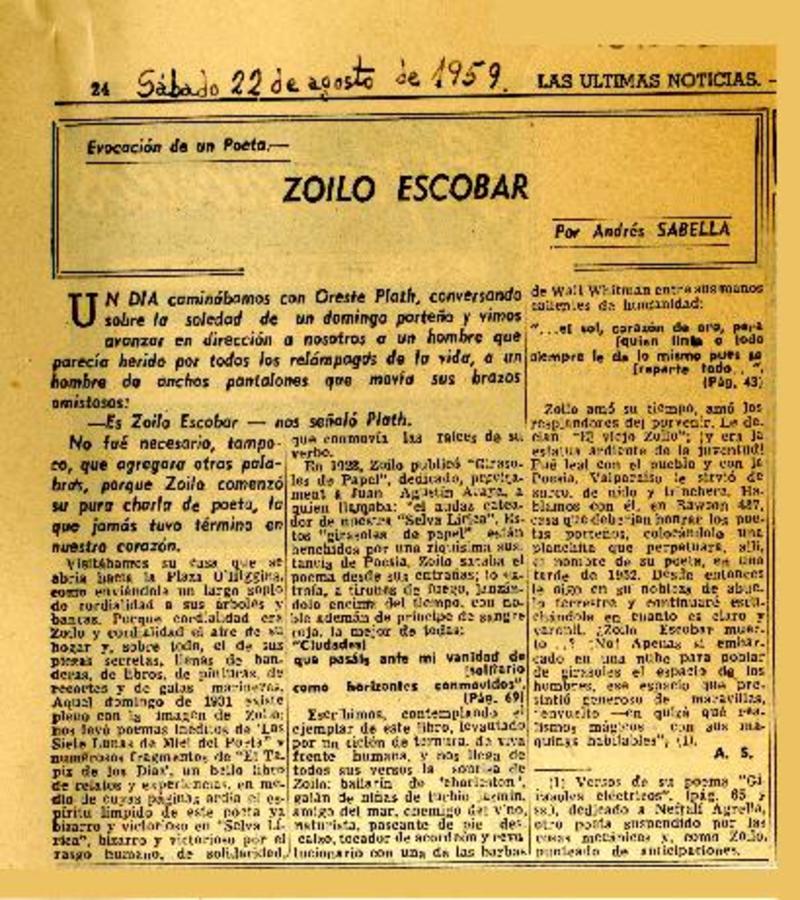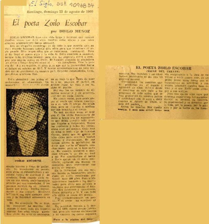 El poeta Zoilo Escobar [artículo] Diego Muñoz.