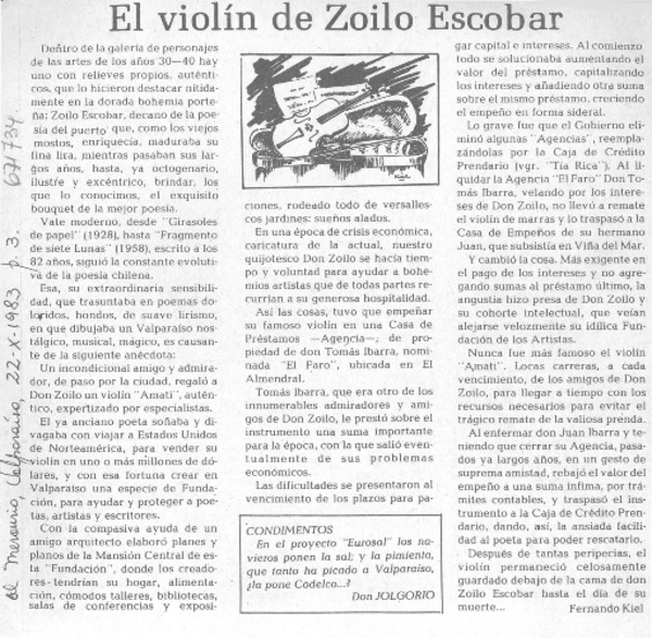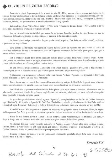 El violín de Zoilo Escobar [artículo] Fernando Kiel