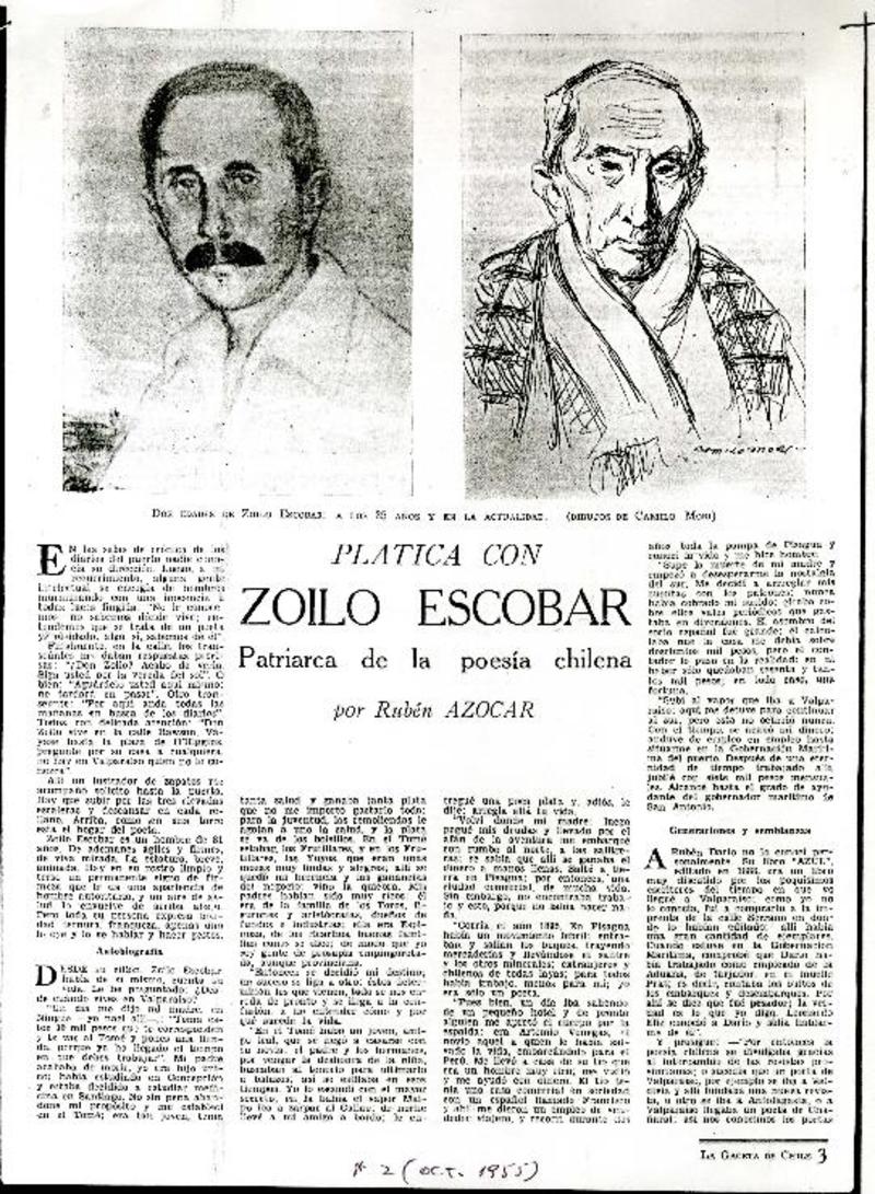 Plática con Zoilo Escobar [entrevista] [artículo] : Rubén Azócar.
