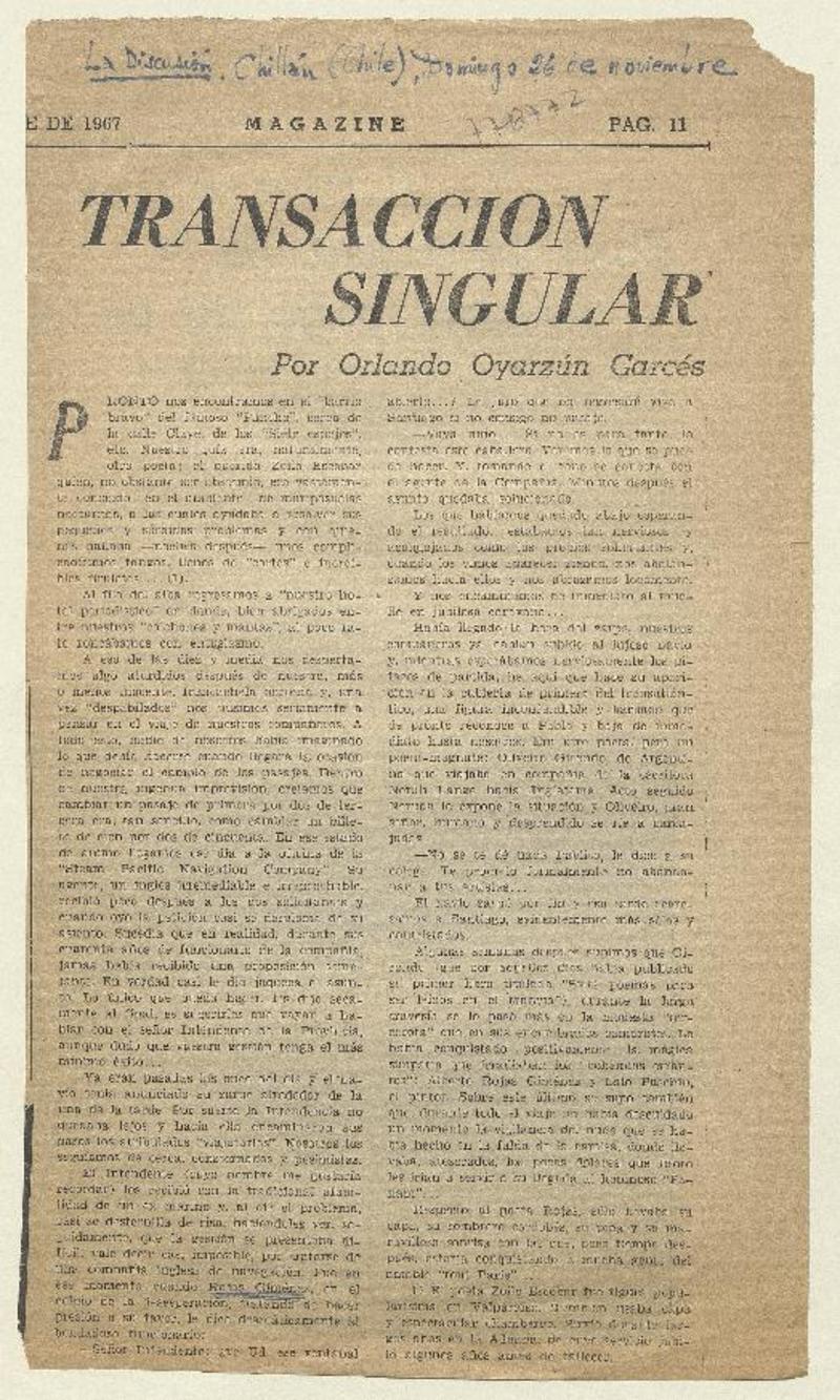 Transacción singular [artículo] Orlando Oyarzún Garcés.