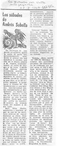 Evocación de Vicente Grez [artículo] Hugo Montes.
