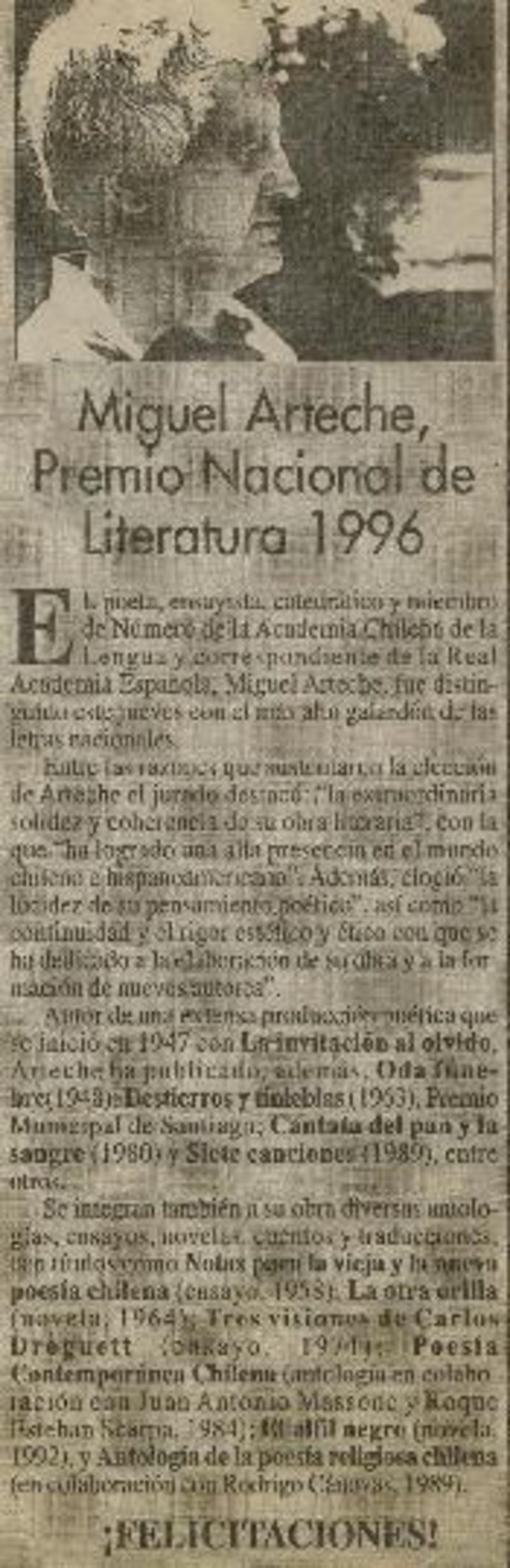 Autores chilenos - Arteche, Miguel - Cantata del pan y la sangre