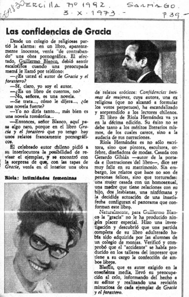 Autores chilenos - Blanco, Guillermo - Gracia y el forastero - Riola - Confidencias íntimas de mujeres