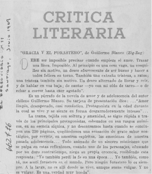 Autores chilenos - Blanco, Guillermo - Gracia y el forastero