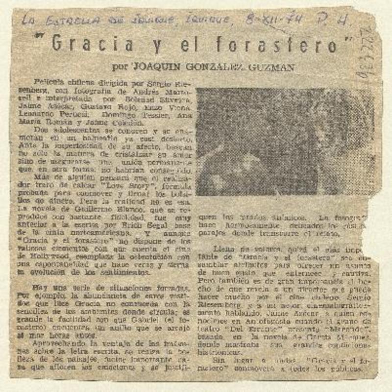 Gracia y el forastero [artículo] Joaquín González Guzmán.