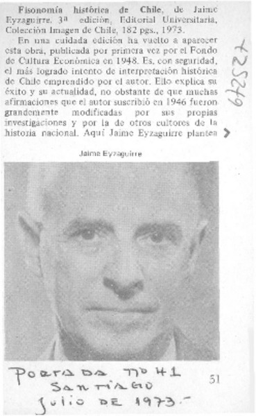 Eyzaguirre, Jaime - Autores chilenos - Fisonomía histórica de Chile