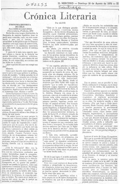 Fisonomía histórica de Chile [artículo] Alone.