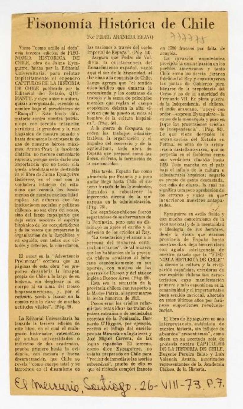 Fisonomía histórica de Chile [artículo] Fidel Araneda Bravo.