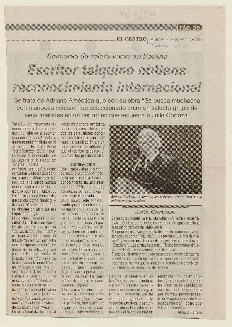Escritor talquino obtiene reconocimiento internacional [artículo]Manuel Herrera.