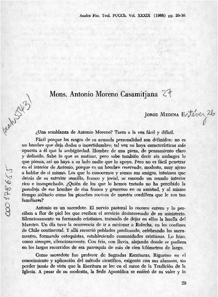 Mons. Antonio Moreno Casamitjana [artículo] Jorge Medina E.