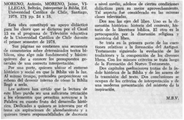 Moreno Casamitjana, Antonio - Moreno, Jaime - Interpretar la biblia - Villegas, Beltrán - Autores chilenos