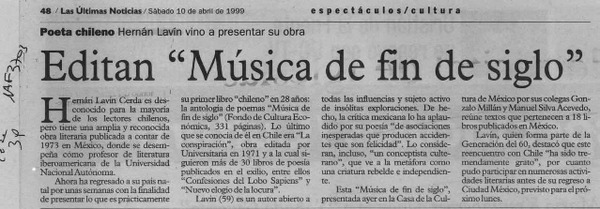LAVIN CERDA, HERNAN - MUSICA DE FIN DE SIGLO