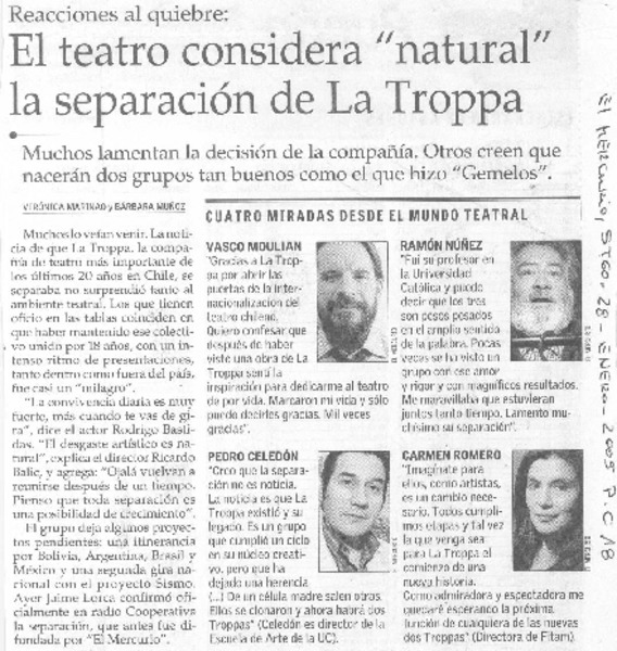 El teatro considera "natural" la separación de La Troppa [artículo] Varónica Marinao <Y> Bárbara Muñoz.
