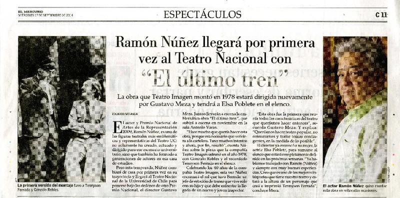 Ramón Nuñez llegará por primera vez al Teatro Nacional con "El último tren" [artículo] Eduardo Miranda