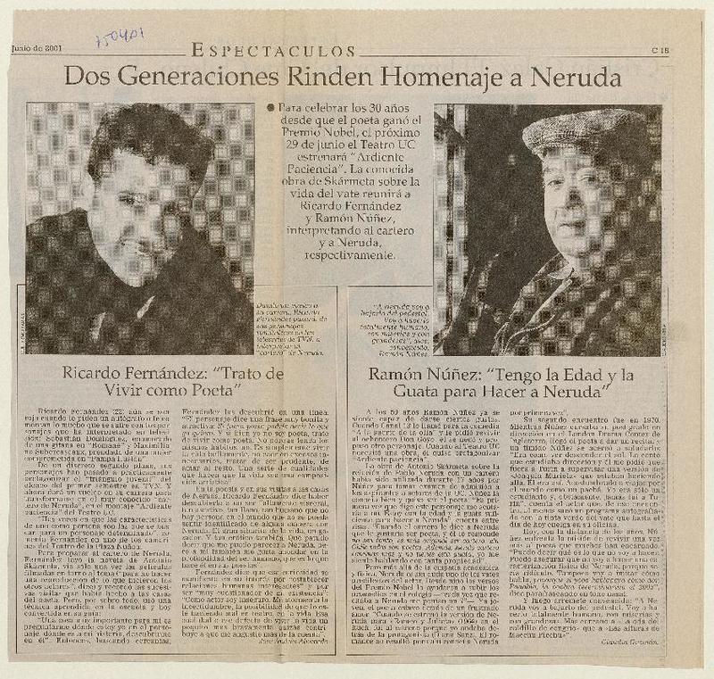 Dos generaciones rinden homenaje a Neruda [artículo] José Andrés Alvarado y Claudia Guzmán.