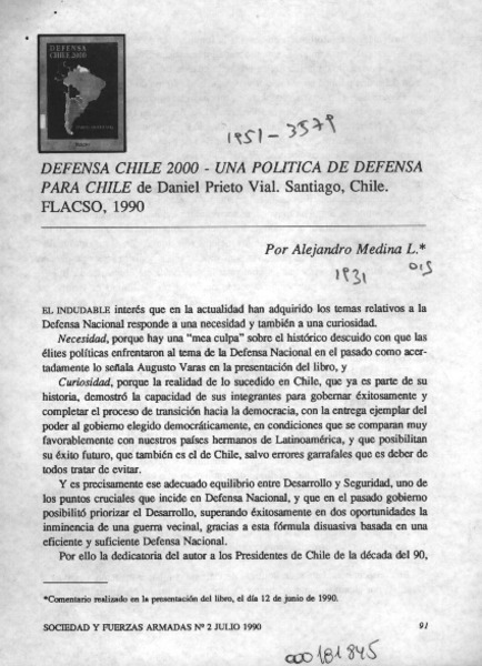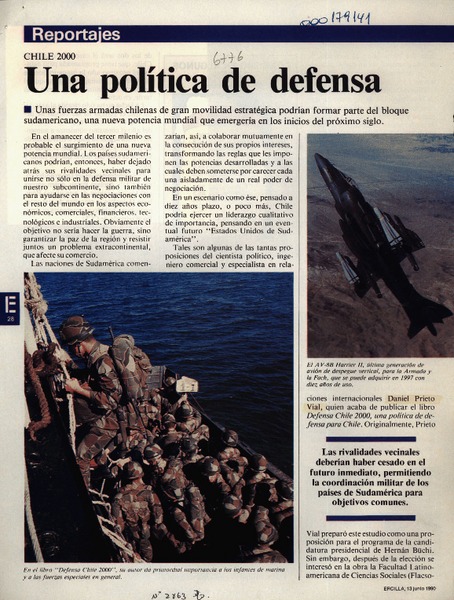 Defensa Chile 2000 - Una política de defensa para Chile [artículo] Alejandro Medina L.