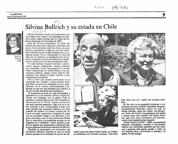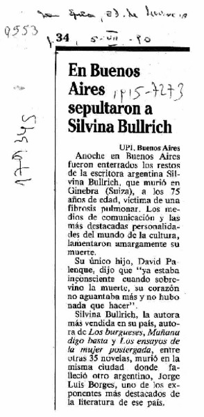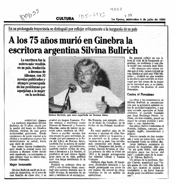 Escritora Silvina Bullrich falleció en Ginebra [artículo].