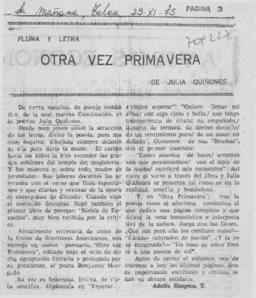 Otra vez primavera [artículo] Adolfo Simpson T.