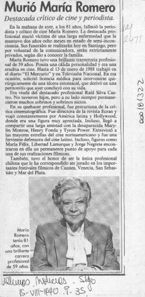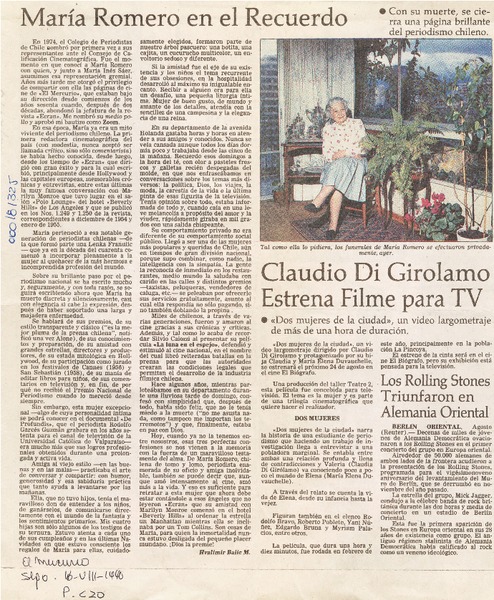 María Romero en el recuerdo [artículo] Hvalimir Balic M.