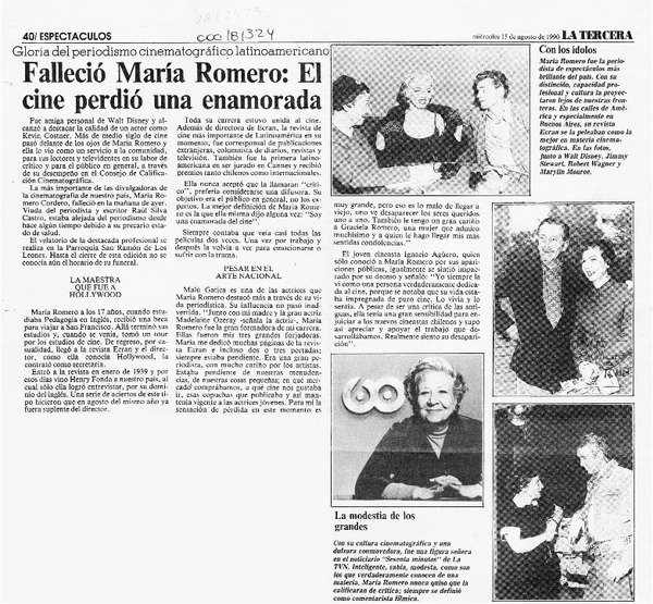 El Periodismo chileno siente la muerte de la crítica de cine María Romero [artículo].