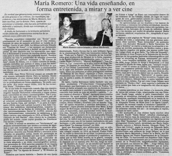 María Romero: una vida enseñando, en forma entretenida, a mirar y a ver cine [artículo] :