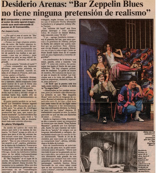 Desiderio Arenas, "Bar Zeppelin blues no tiene ninguna pretensión de realismo" [artículo] Amparo Lavín.