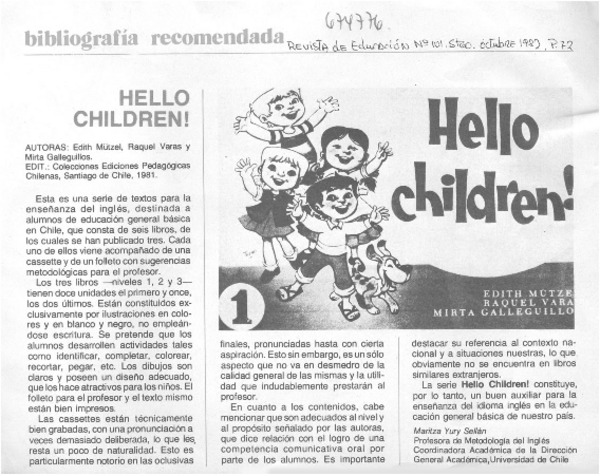 Autoras chilenas - Mützel de Berner, Edith - Galleguillos Monterrey, Mirta - Hello children - Varas de Latorre, Raquel