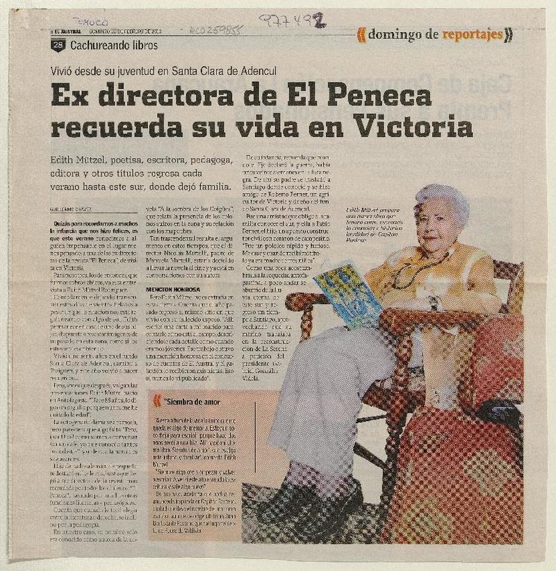 Ex directora de El Peneca recuerda su vida en Victoria (entrevista) [artículo] Guillermo Chávez.