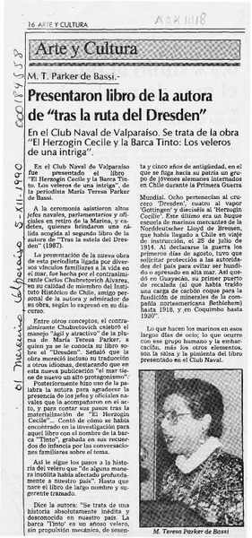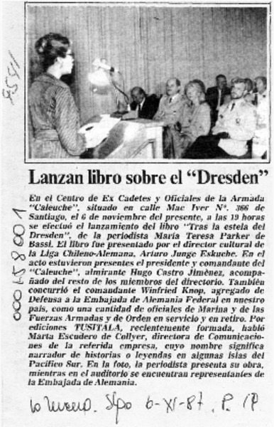 Presentaron libro de la autora de "Tras la ruta del Dresden" [artículo].