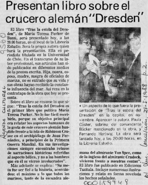 Presentan libro sobre el crucero alemán "Dresden" [artículo].