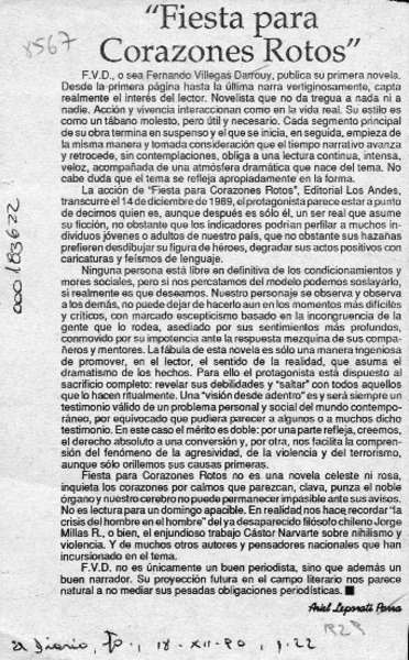 "Fiesta para corazones rotos" [artículo].