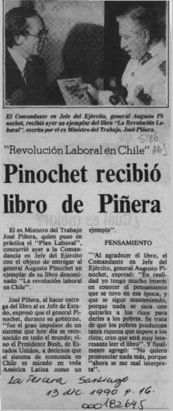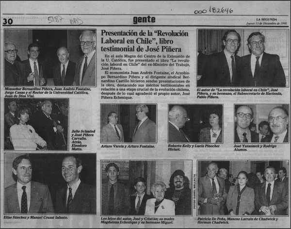 Presentación de la "Revolución laboral en Chile", libro testimonial de José Piñera [artículo].