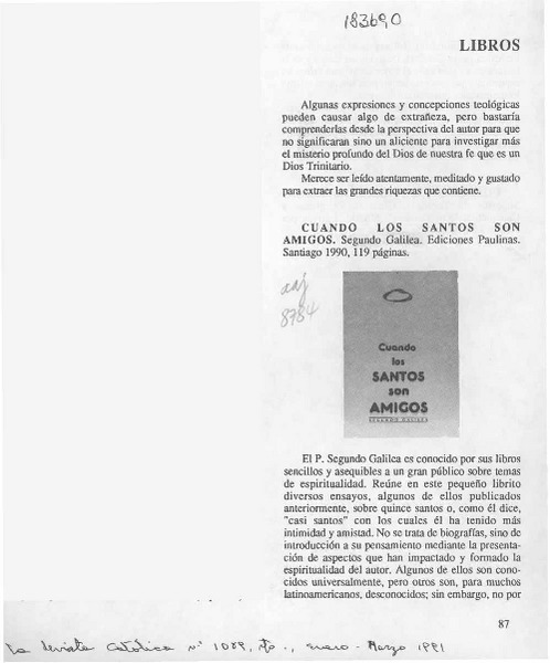 GALILEA, SEGUNDO - CUANDO LOS SANTOS SON AMIGOS
