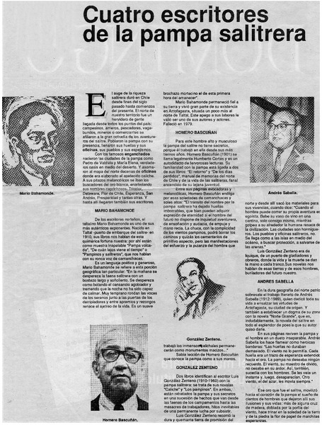 Cuatro escritores de la pampa salitrera [artículo] Marino Muñoz Lagos.