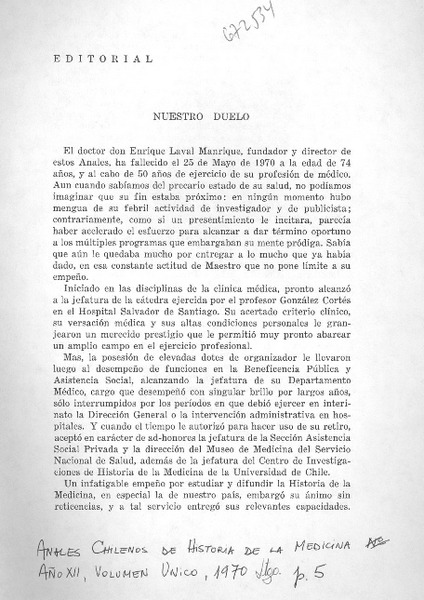 La historia de la medicina y el profesor Laval [artículo] Luis Herve Lelievre.