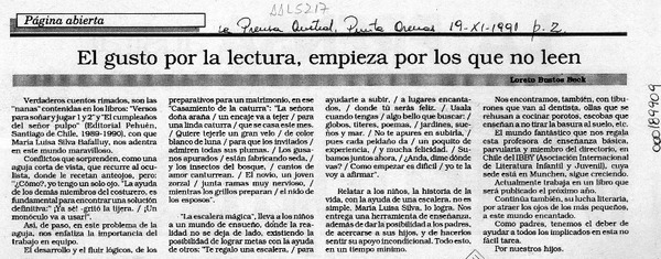 El gusto por la lectura, empieza por los que no leen [artículo] Loreto Bustos Beck.