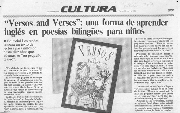 "Versos and verses", una forma de aprender inglés en poesías bilingües para niños [artículo]