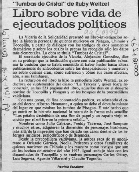 Libro sobre vida de ejecutados políticos [artículo] Patricia Escalona.