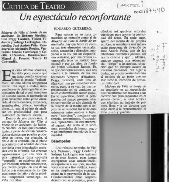 "Mujeres de Viña al borde de un asesinato" [artículo] Hilda Arévalo V.