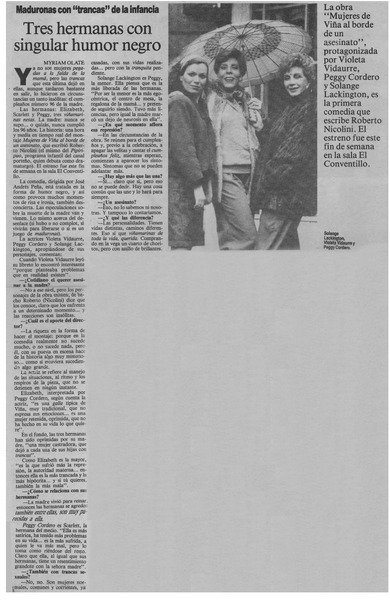 Tres hermanas con singular humor negro [artículo] Myriam Olate.