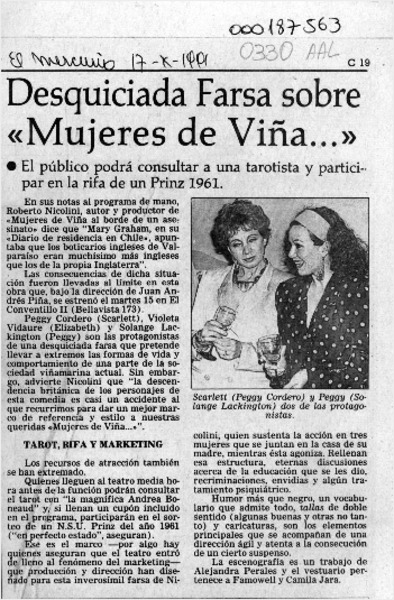 Desquiciada farsa sobre "Mujeres de Viña -- " [artículo].